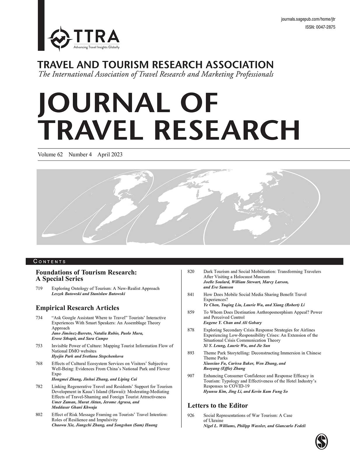 - Tan, J., & Cheng, M. (2024). Tourism, War and Media. Journal of Travel Research. (Q1) (ABDC: A*)